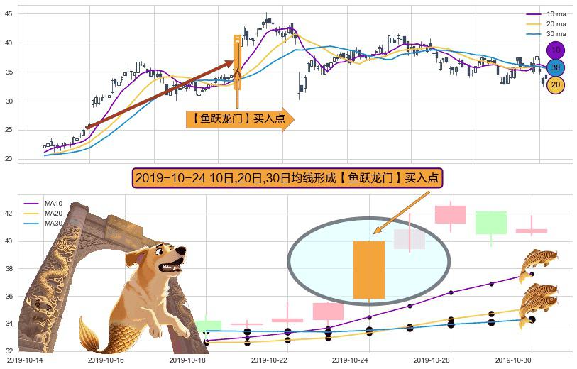 形态多维评估: ⚀ 2019-10-24日显现 10日-20日-30日均线 【鱼跃龙门】买入点 看多信号,后市看涨,买入