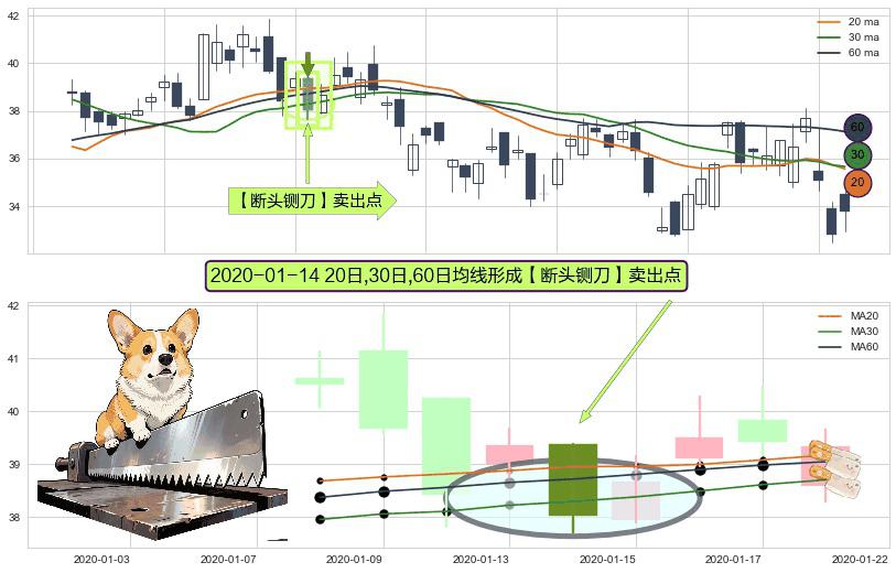 形态多维评估: ⚀ 2020-01-14日显现 20日-30日-60日均线 【断头铡刀】卖出点 看空信号,后市看跌,卖出