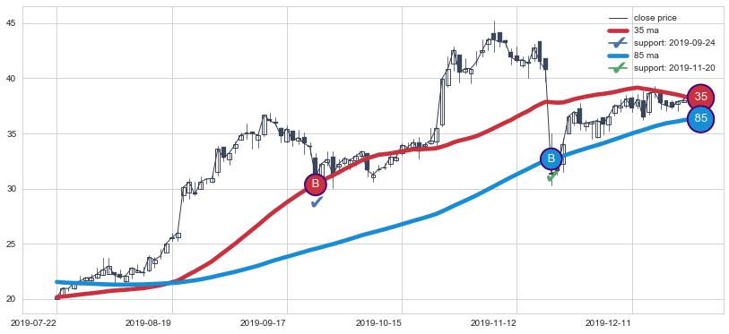 上涨趋势2019-07-22-2019-12-26,均线35, 85确认关键支撑2处