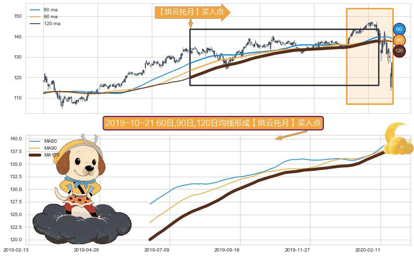 ⚀ 2019-06-18日-2020-02-25日显现 60日-90日-120日均线 【烘云托月】买入点 看多信号,后市看涨,买入