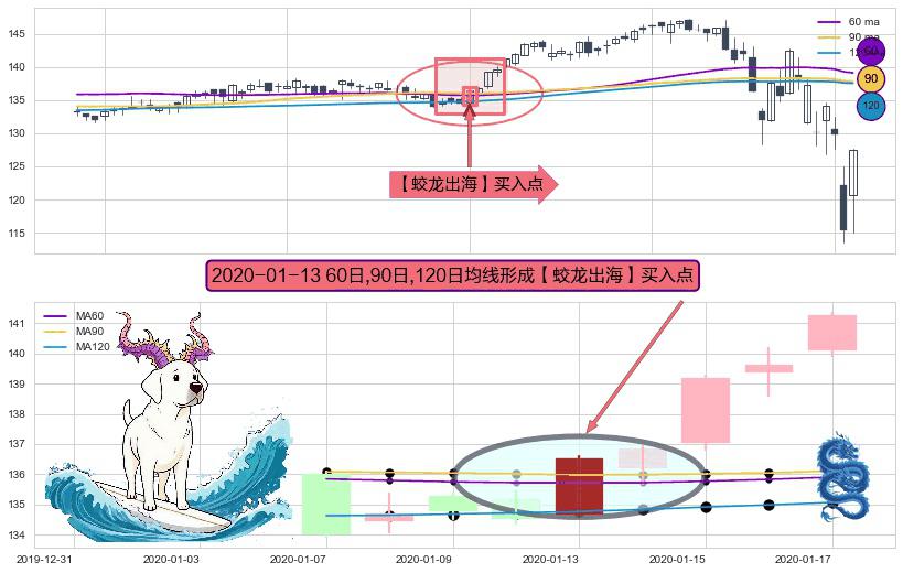 ⚀ 2020-01-13日显现 60日-90日-120日均线 【蛟龙出海】买入点 看多信号,后市看涨,买入