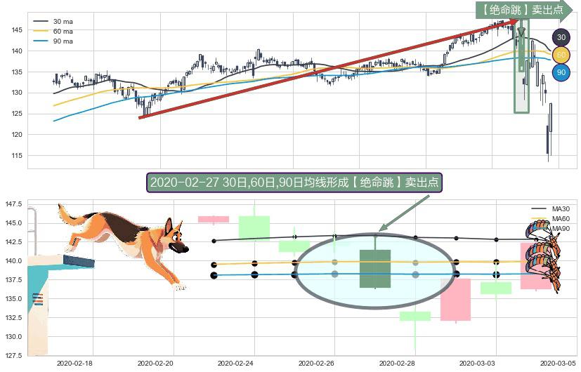 ⚀ 2020-02-27日显现 30日-60日-90日均线 【绝命跳】卖出点 看空信号,后市看跌,卖出