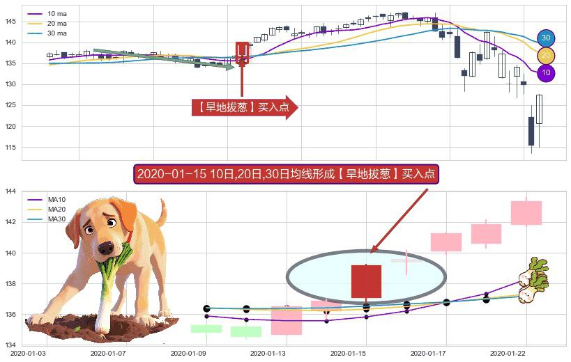 ⚀ 2020-01-15日显现 10日-20日-30日均线 【旱地拔葱】买入点 看多信号,后市看涨,买入