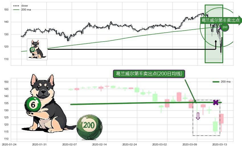 ⚀ 2020-03-09-日显现 葛兰威尔均线 200日均线 第⑥卖出点 走势反转见顶信号,后市看跌,卖出信号