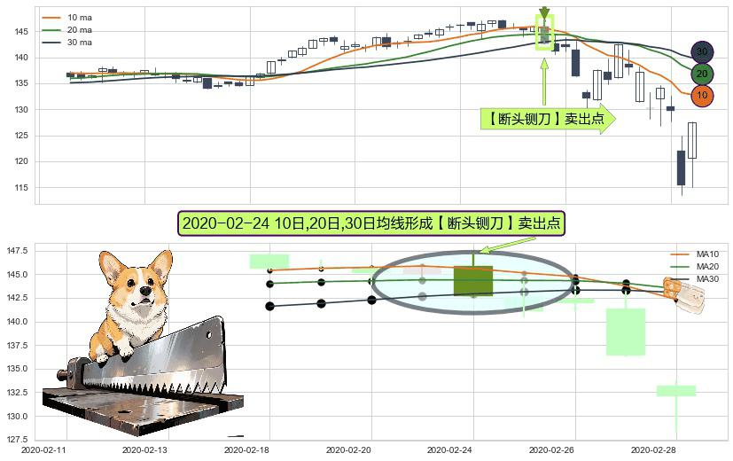 ⚀ 2020-02-24日显现 10日-20日-30日均线 【断头铡刀】卖出点 看空信号,后市看跌,卖出