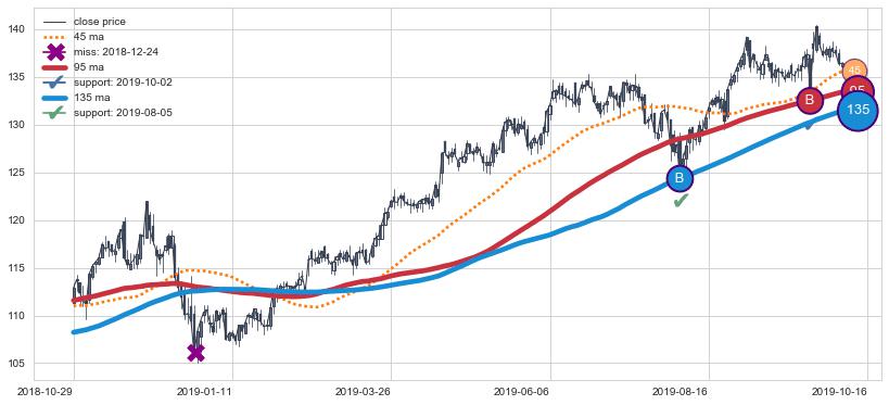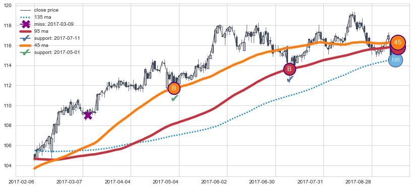 ⚁ MA60和MA90走势平行,且始终保持在短距离内,MA120始终在短中期均线下方,与短中期均线保持一定的距离,微微上行