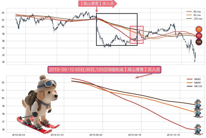 ⚀ 2019-07-29日-2019-10-28日显现 60日-90日-120日均线 【高山滑雪】买入点 看多信号,后市看涨,买入