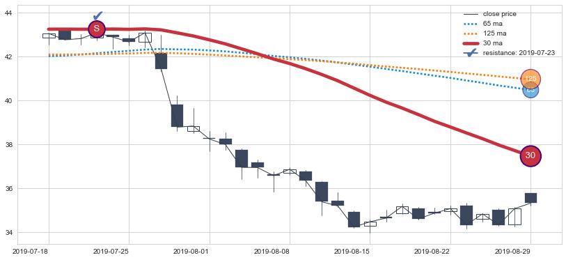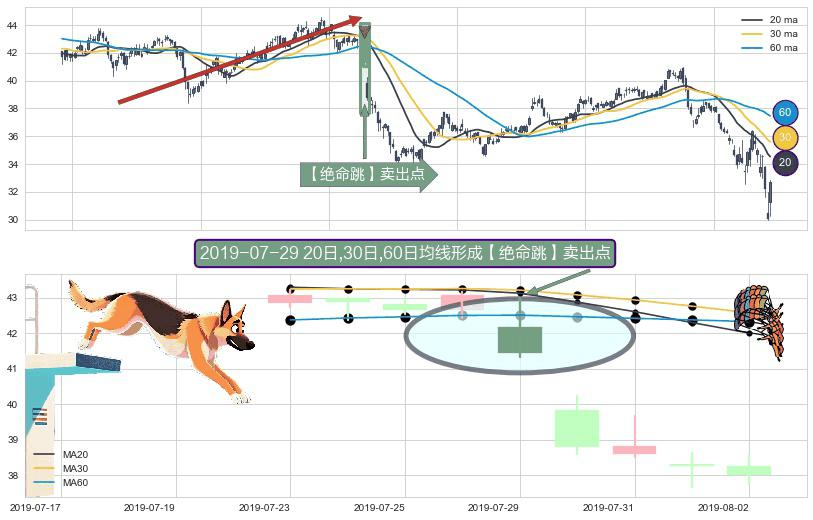 ⚀ 2019-07-29日显现 20日-30日-60日均线 【绝命跳】卖出点 看空信号,后市看跌,卖出