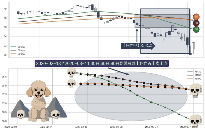 ⚀ 2020-02-19-日至2020-03-11-日显现 30日-60日-90日均线 【死亡谷】卖出点 看空信号,后市看跌,卖出
