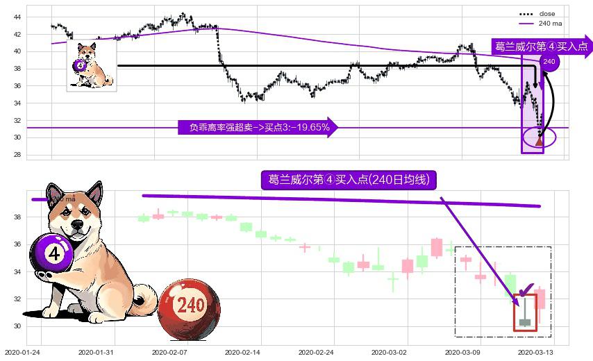 ⚀ 2020-03-12-日显现 葛兰威尔均线 240日均线 第④买入点 下降趋势均值回复的短线反弹信号,后市看涨,买进信号