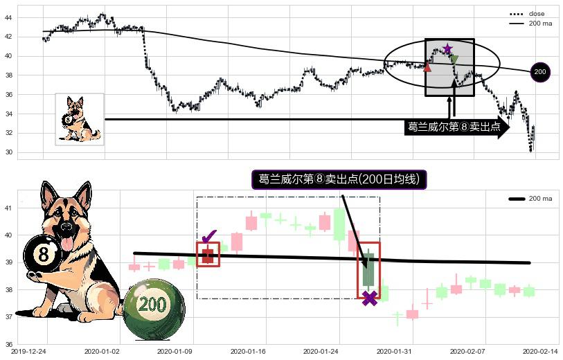 ⚀ 2020-01-28-日显现 葛兰威尔均线 200日均线 第⑧卖出点 下降趋势的中继信号,后市看跌,卖出信号