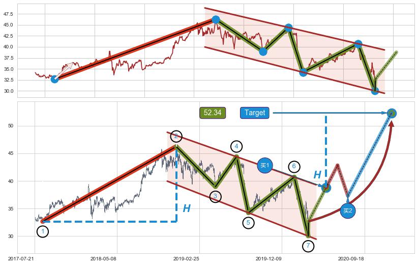 ➣ 最小中继整理涨幅→𝐇: 13.56 (𝐇旗杆的长度:旗杆起点→顶点)