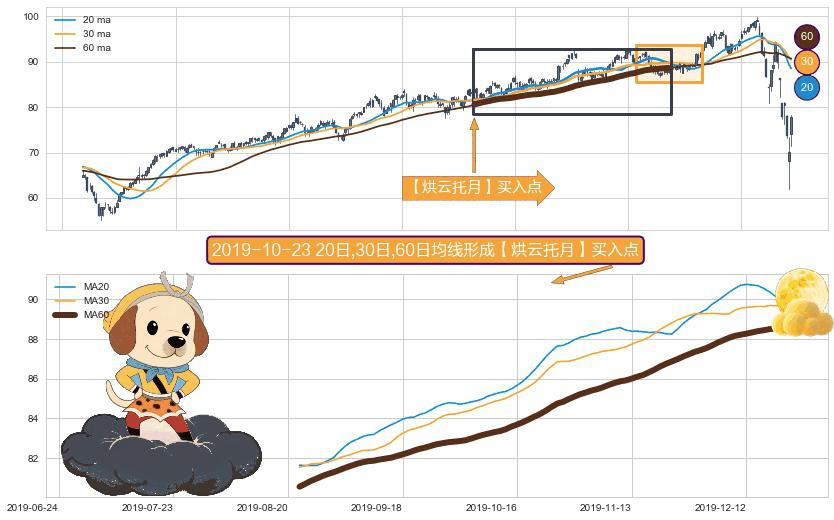 ⚀ 2019-08-22日-2019-12-24日显现 20日-30日-60日均线 【烘云托月】买入点 看多信号,后市看涨,买入
