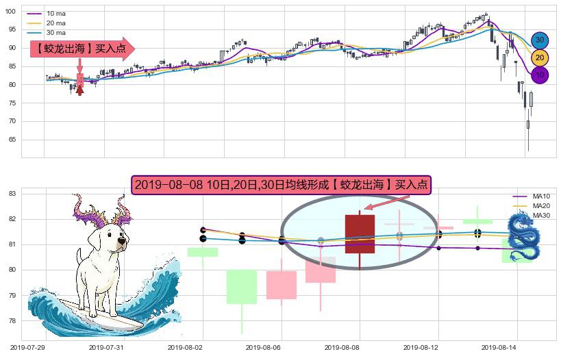 ⚀ 2019-08-08日显现 10日-20日-30日均线 【蛟龙出海】买入点 看多信号,后市看涨,买入