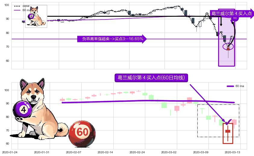 ⚀ 2020-03-12-日显现 葛兰威尔均线 60日均线 第④买入点 下降趋势均值回复的短线反弹信号,后市看涨,买进信号