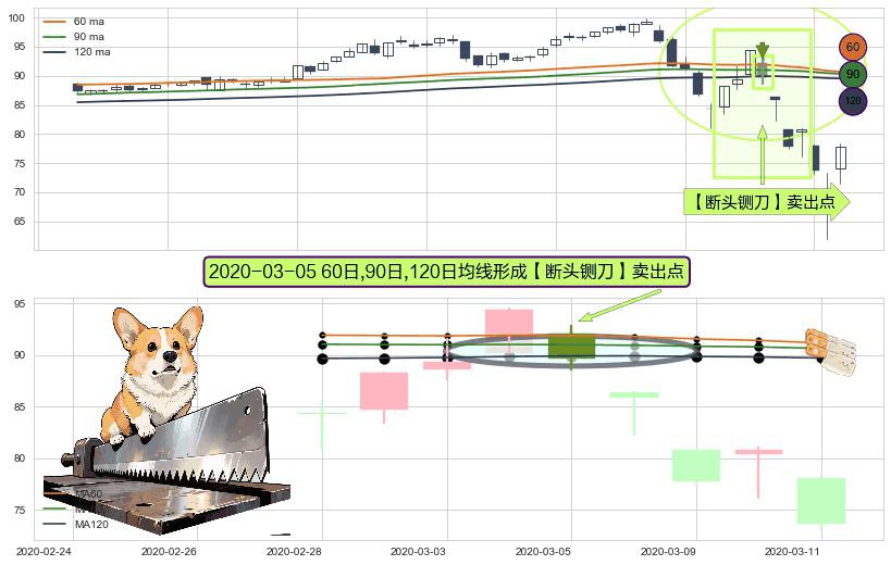 ⚀ 2020-03-05日显现 60日-90日-120日均线 【断头铡刀】卖出点 看空信号,后市看跌,卖出