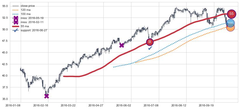 ➢ 最优均线组合共正确确认支撑阻力信号6处,正确确认率 42.86%
