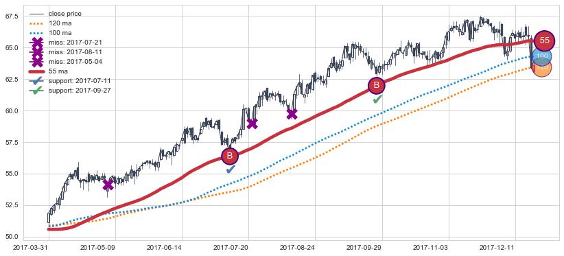 2017-03-31至2017-12-20 慢线与快线呈多头排列, 慢线与快线接触少,无缠绕