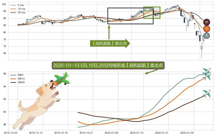 ⚀ 2019-12-23日-2020-01-30日显现 5日-10日-20日均线 【战机起航】卖出点 看空信号,后市看跌,卖出