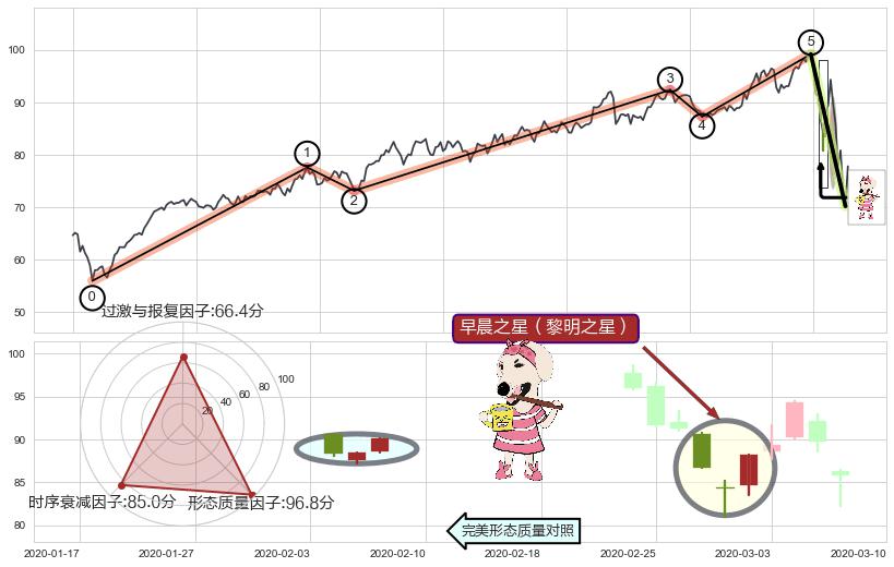 | 8 🅚:黄昏之星(夜星) ➕ 🌊:波浪理论上涨5浪延续回调:猜想回调C点击穿破位,猜想持续蓄力回调abc下跌方向(大周期趋势均值回复后小周期持续趋势跟踪) ☞ 看空信号 ⇥ 【🅚线】交织【图形】⇥ 综合量化分数: 49 | > |