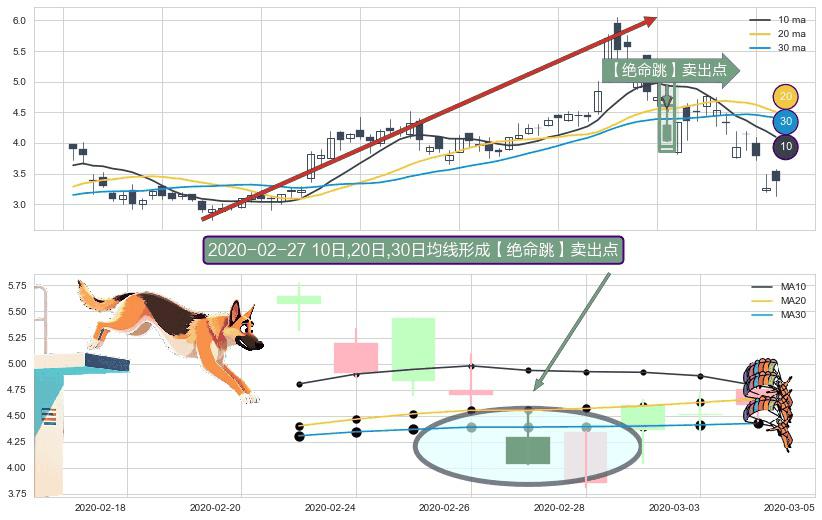⚀ 2020-02-27日显现 10日-20日-30日均线 【绝命跳】卖出点 看空信号,后市看跌,卖出