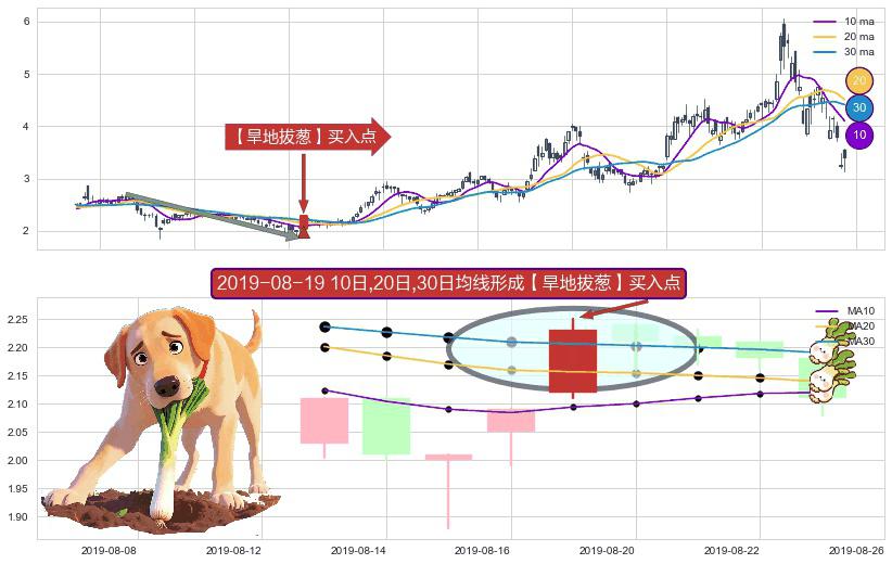 ⚀ 2019-08-19日显现 10日-20日-30日均线 【旱地拔葱】买入点 看多信号,后市看涨,买入
