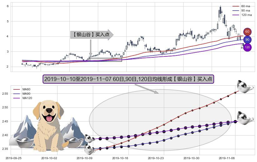 ⚀ 2019-10-11-日至2019-11-07-日显现 60日-90日-120日均线 【银山谷】买入点 看多信号,后市看涨,买入