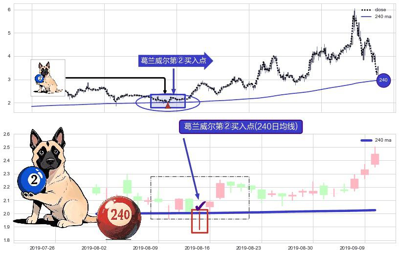 ⚀ 2019-08-15-日显现 葛兰威尔均线 240日均线 第②买入点 上升趋势的中继信号,后市看涨,买进信号