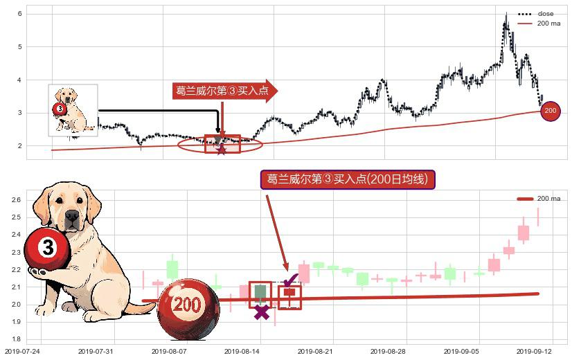 ⚀ 2019-08-16-日显现 葛兰威尔均线 200日均线 第③买入点 上升趋势的中继信号,后市看涨,买进信号