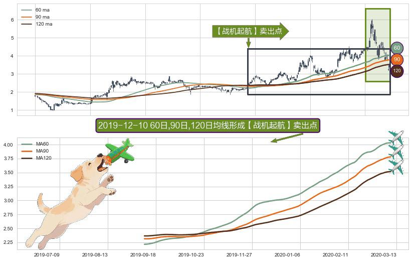 ⚀ 2019-09-10日-2020-03-13日显现 60日-90日-120日均线 【战机起航】卖出点 看空信号,后市看跌,卖出