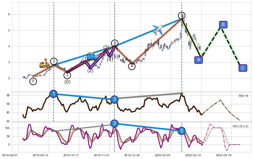➣ 第三,五驱动浪动能呈现递进增强,走势出现【中继】,中继程度较大