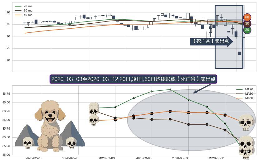 形态多维评估: ⚀ 2020-03-04-日至2020-03-12-日显现 20日-30日-60日均线 【死亡谷】卖出点 看空信号,后市看跌,卖出