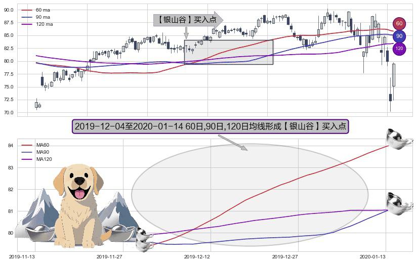 形态多维评估: ⚀ 2019-12-05-日至2020-01-14-日显现 60日-90日-120日均线 【银山谷】买入点 看多信号,后市看涨,买入