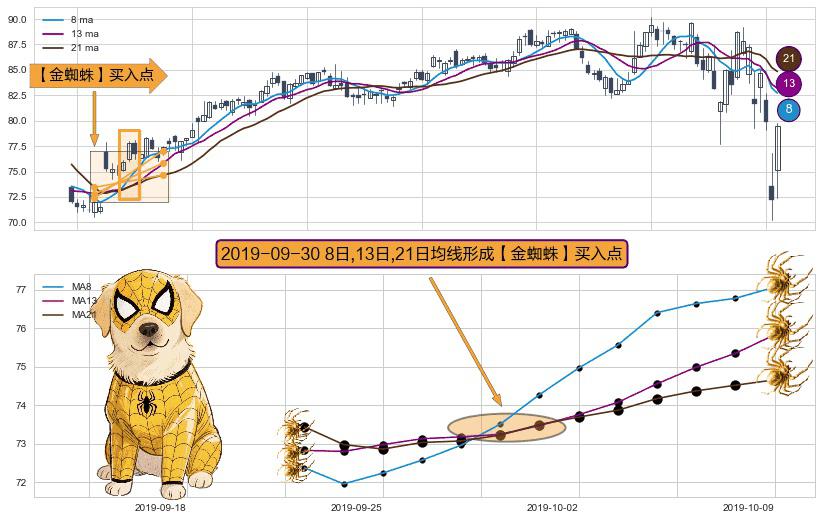 形态多维评估: ⚀ 2019-09-30日显现 8日-13日-21日均线 【金蜘蛛】买入点 看多信号,后市看涨,买入