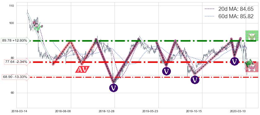 ♘ 阻力价格位89.78,可信任强度93.99%,距离最后交易2020-03-13形成的收盘价格79.50相差 +12.93%