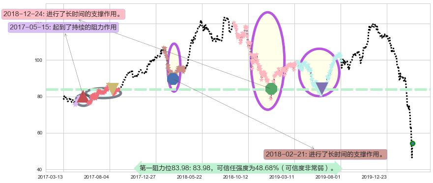 ♞ 第一阻力位83.98价格为83.98,其通过量化计算出的可信任强度为48.68%(可信度非常弱)。