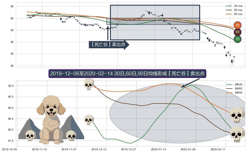 形态多维评估: ⚀ 2019-12-09-日至2020-02-14-日显现 30日-60日-90日均线 【死亡谷】卖出点 看空信号,后市看跌,卖出