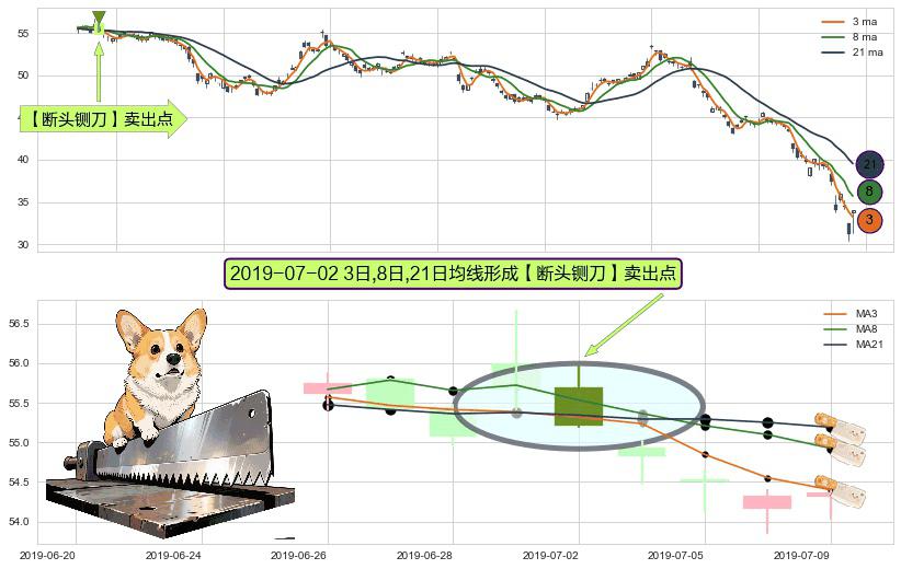 形态多维评估: ⚀ 2019-07-02日显现 3日-8日-21日均线 【断头铡刀】卖出点 看空信号,后市看跌,卖出