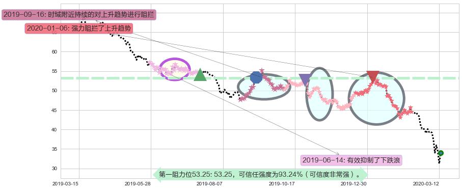 ♘ 在最后的下跌阶段2019-03-20至2020-03-13,存在 持续未破位的阻力位 ,阻力价格49.28,可信任强度88.32%,其距离最后价格34.00相差 +44.93%