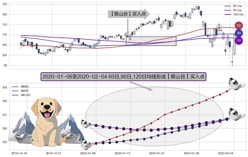 形态多维评估: ⚀ 2020-01-07-日至2020-02-04-日显现 60日-90日-120日均线 【银山谷】买入点 看多信号,后市看涨,买入