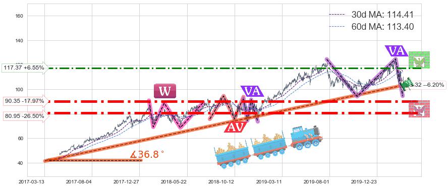♘ 支撑价格位80.95,可信任强度86.03%,距离最后交易2020-03-13形成的收盘价格110.15相差 -26.50%