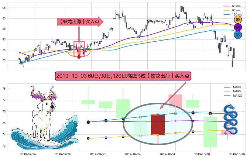 ⚀ 2019-10-03日显现 60日-90日-120日均线 【蛟龙出海】买入点 看多信号,后市看涨,买入