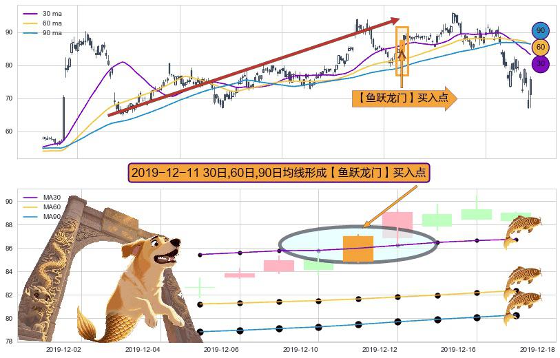 ⚀ 2019-12-11日显现 30日-60日-90日均线 【鱼跃龙门】买入点 看多信号,后市看涨,买入