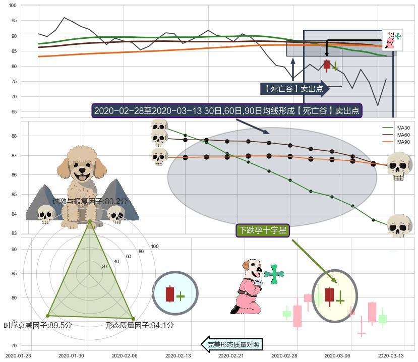 | 5 🅚:【死亡谷】卖出点 ➕ 📈:趋势线上涨趋势原支撑已出现破位,猜想原支撑已变为阻力位(大周期均值回复) ☞ 看空信号 ⇥ 【均线】交织【图形】⇥ 综合量化分数: 49 | > |