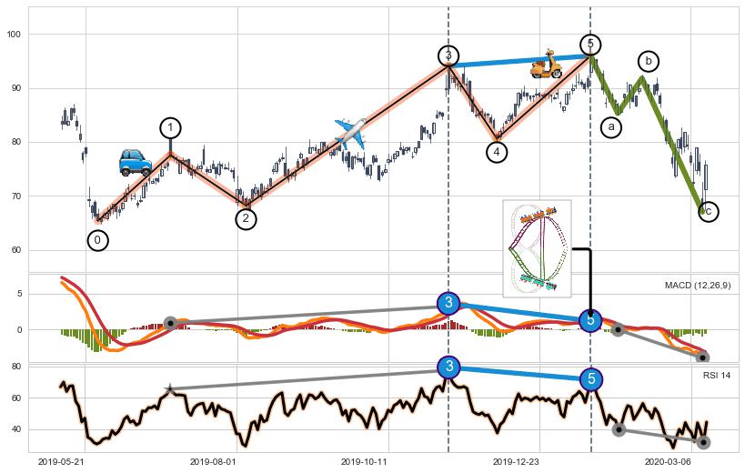 ➣ a,c调整浪MACD, RSI, KDJ走势都【未出现】背离,abc走势延续, 5浪反转概率增强