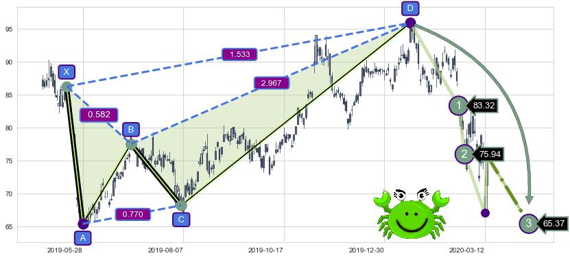 ➣ 已完成【螃蟹】形态起点X: 2019-05-15, 终点D: 2020-01-17, 共172交易日