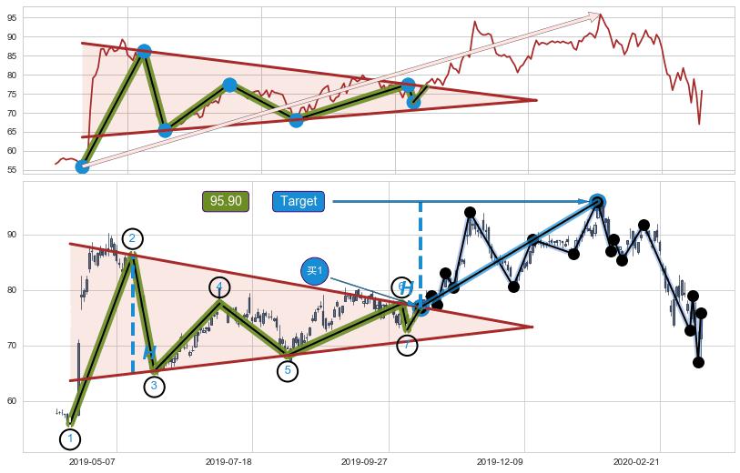 ➢ AI预测: 假定反转如期而至,第❸价格目标位置(2020-05-11, 95.91)