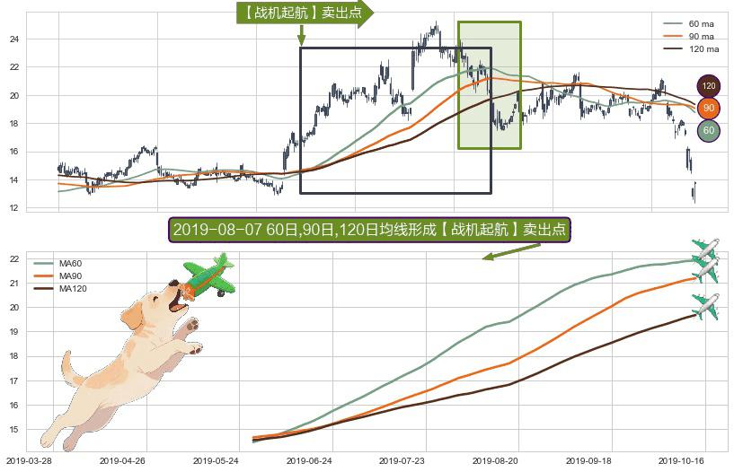 形态多维评估: ⚀ 2019-05-30日-2019-10-14日显现 60日-90日-120日均线 【战机起航】卖出点 看空信号,后市看跌,卖出