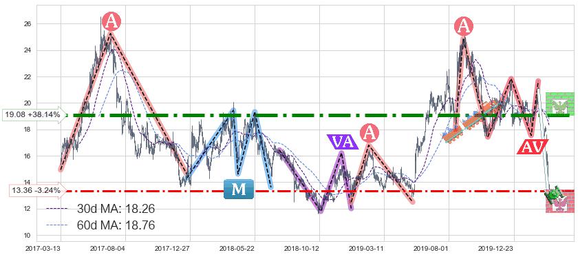 ♘ 阻力价格位19.08,可信任强度85.16%,距离最后交易2020-03-13形成的收盘价格13.81相差 +38.14%