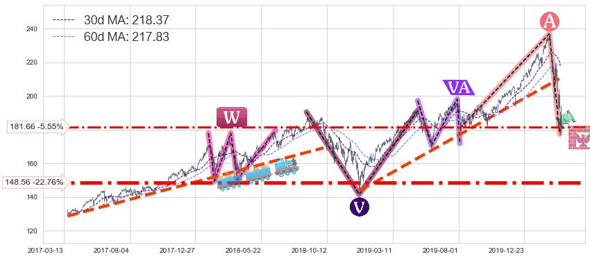 ♘ 支撑价格位181.66,可信任强度67.69%,距离最后交易2020-03-13形成的收盘价格192.34相差 -5.55%